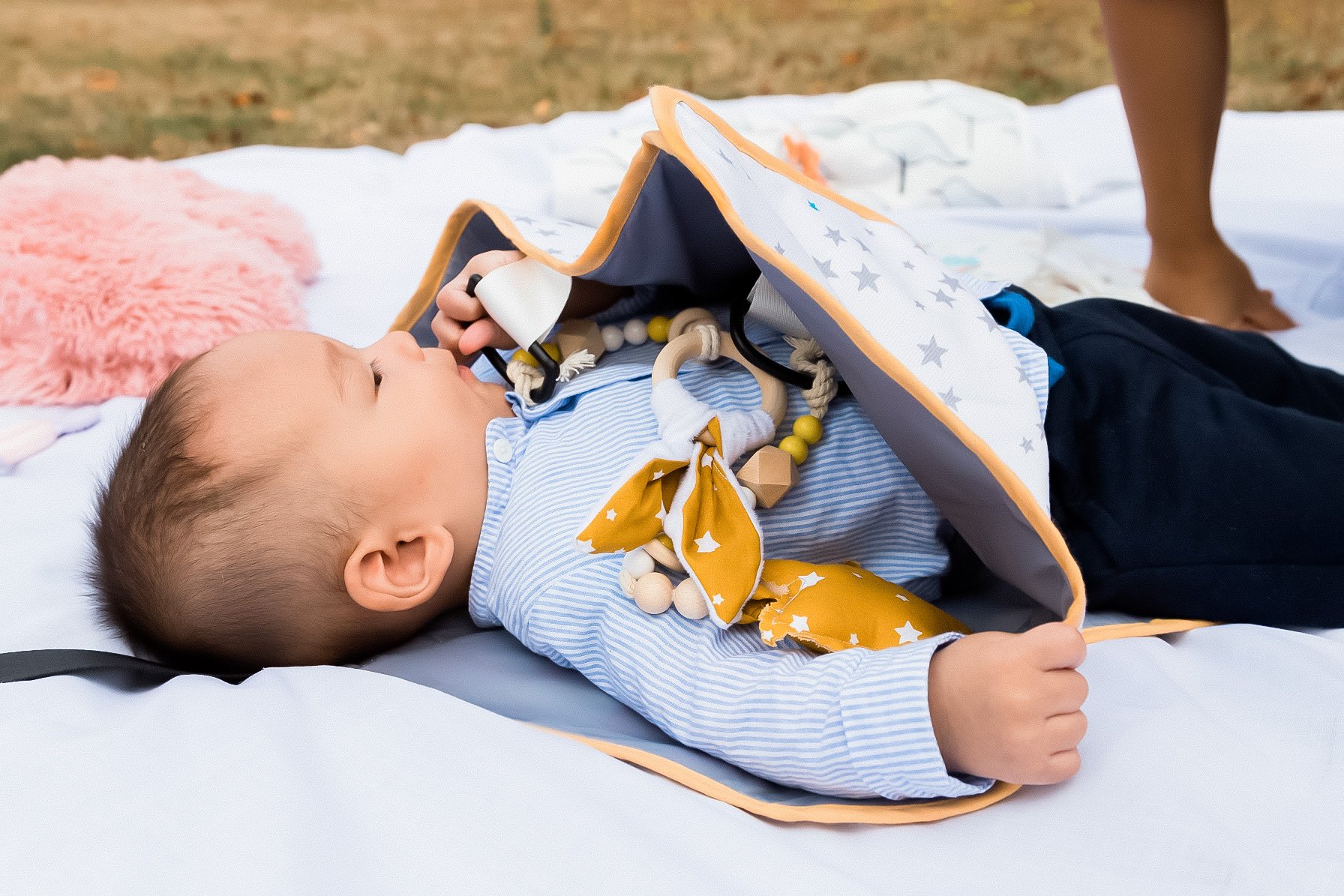 Ce tapis à langer vous offre donc tous les avantages d’un matelas à langer portable standard, mais avec son plus, une barrière souple qui permet de suspendre les jouets de votre bébé et de détourner en douceur sa curiosité.